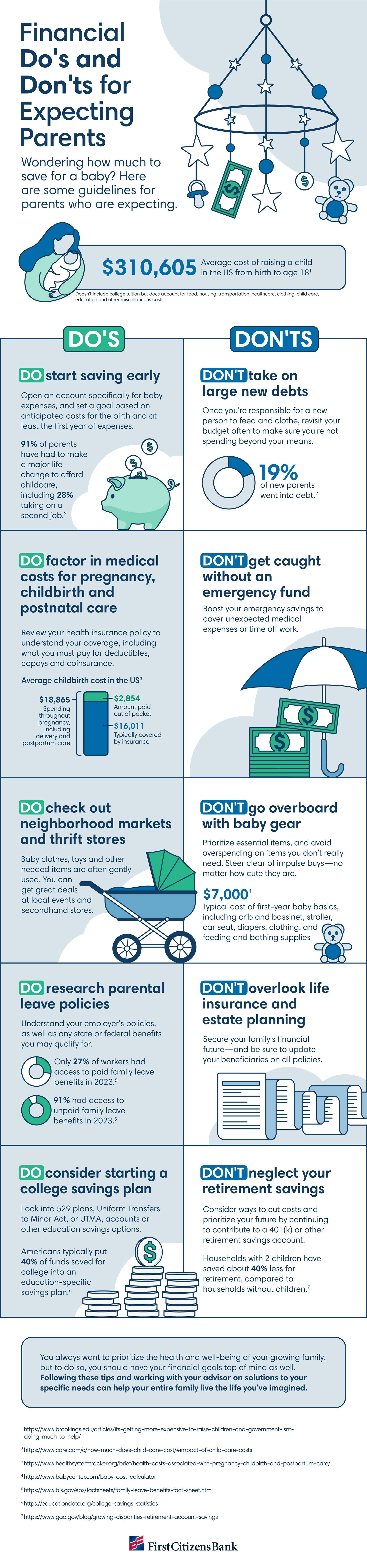This infographic was created for First Citizens Bank. It is a comparison of do's and don'ts for expecting parents.