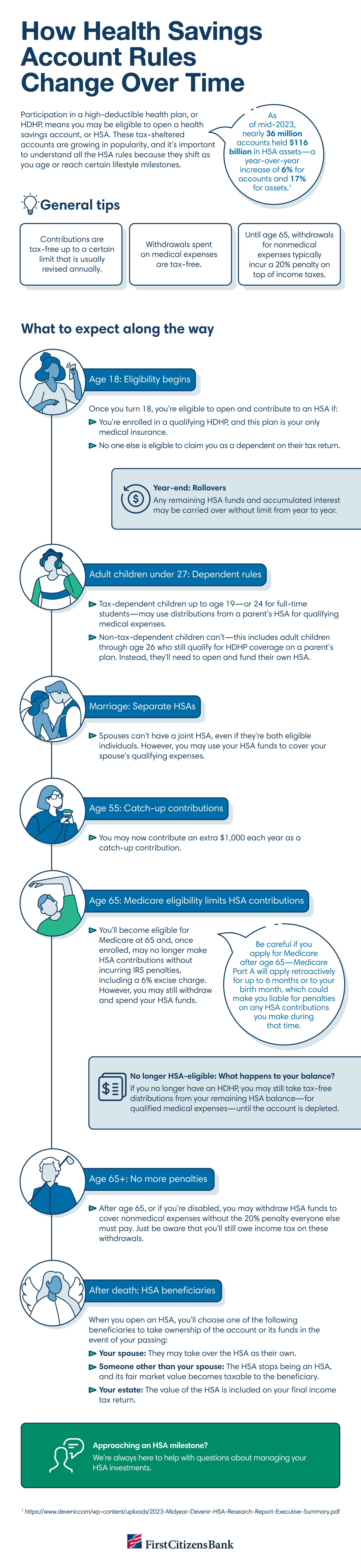 This infographic was created for First Citizens Bank. It explains how health savings accounts change has the years go by.